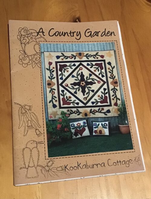 Patchwork and appliqué pattern. Designed by Kookaburra Cottage. Pattern includes wallhanging (168cm x 168cm), Hearts and Flowers cushion (51cm x 58cm) and Beehive and Flowers cushion (48cm x 43cm).