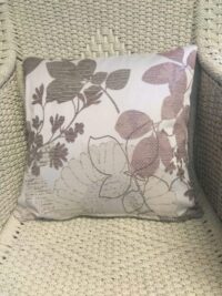 45cm x 45cm scatter cushion cover with zipper opening in bottom seam of cushion. Ivory background with abstract floral design in cream, plum & chocolate tones.